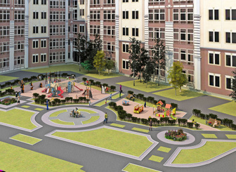 - Для озеленения на площадке следует избегать посадки колючих растений и деревьев с обильным плодоношением. Если предусмотрены газоны, бордюрные камни должны быть округлой или скошенной формы, без острых краев.