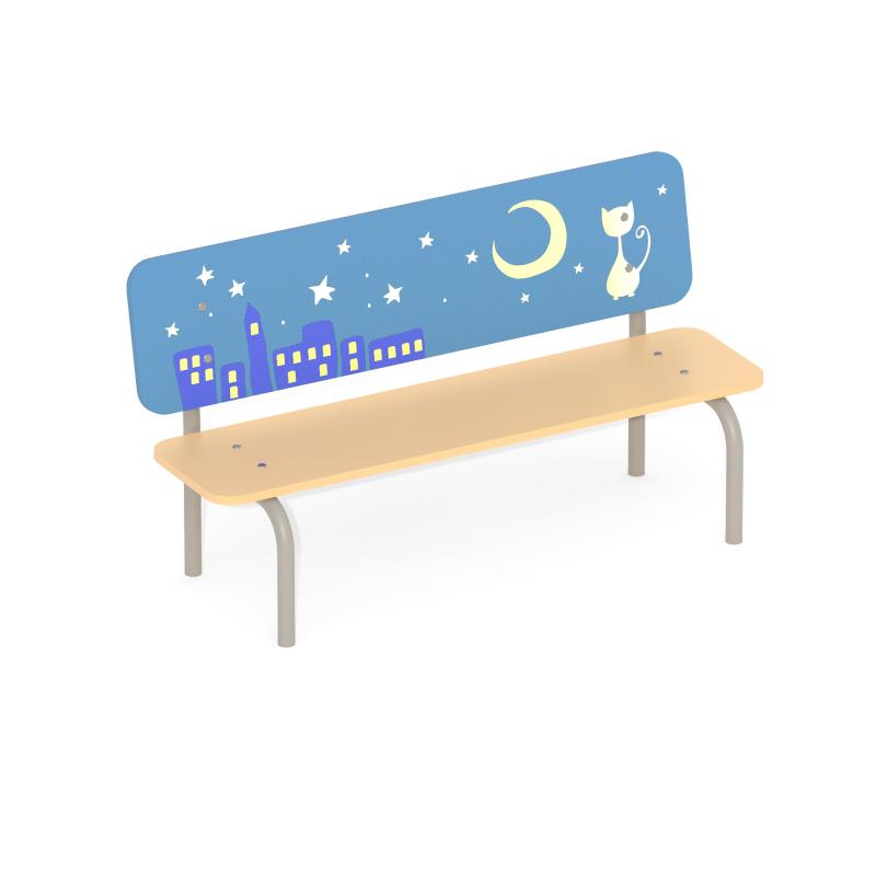 Скамья детская «Romana 302.09.00» двухцветная детская скамейка со спинкой для детских площадок, спортивных городков, детских садов. Спинка изделия декорирована рисунком «Ночь», выполненным «УФ»-печатью.