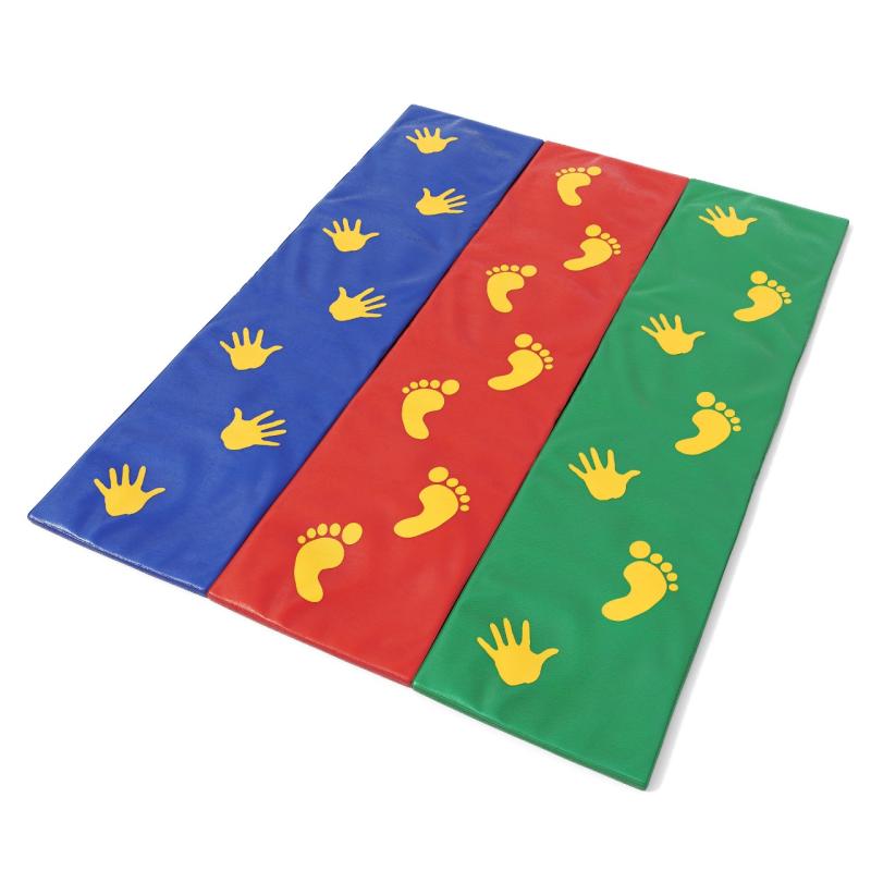 Коврик «Путаница» - это яркая трехцветная дорожка. На ее поверхности изображены ладошки и пяточки, на которые нужно наступать во время занятий. Коврик отлично развивает внимание и координацию движений, закрепляет зрительные навыки, укрепляет мышцы. Габаритные размеры: 2000 х 1500 мм. Допустимая нагрузка 50 кг. Вес с упаковкой 2,5 кг