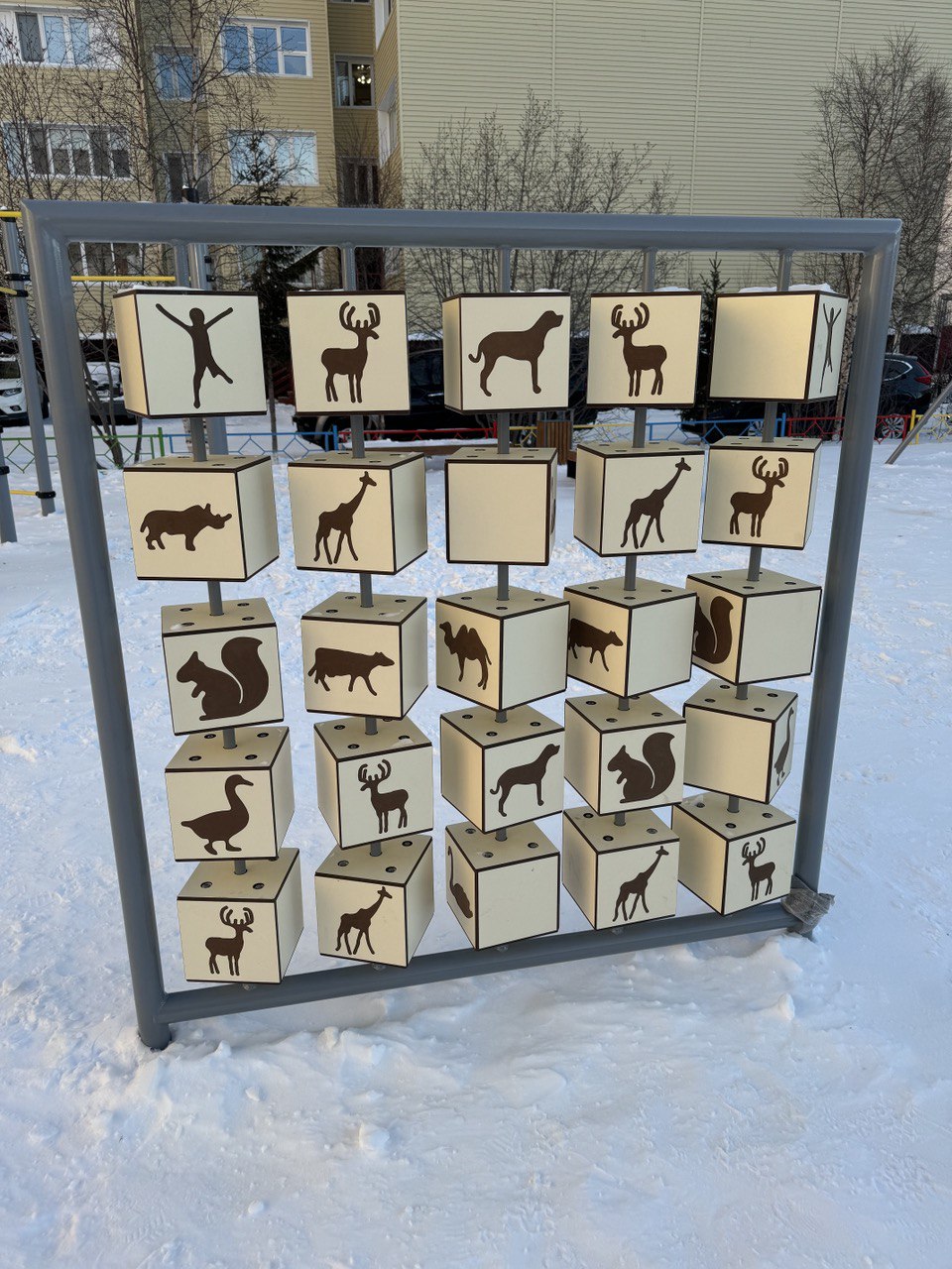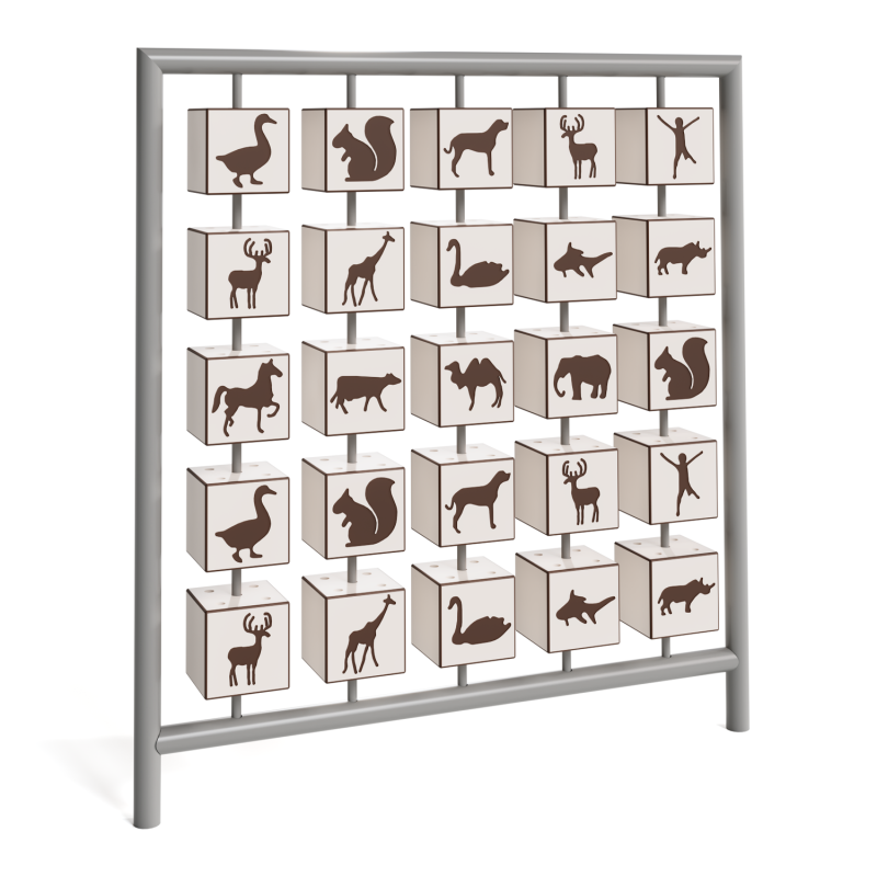 Каркас - сталь конструкционная, покрытие - цинкосодержащий грунт, окраска полимерным порошком. Игровые элементы - HPL с гравировкой.