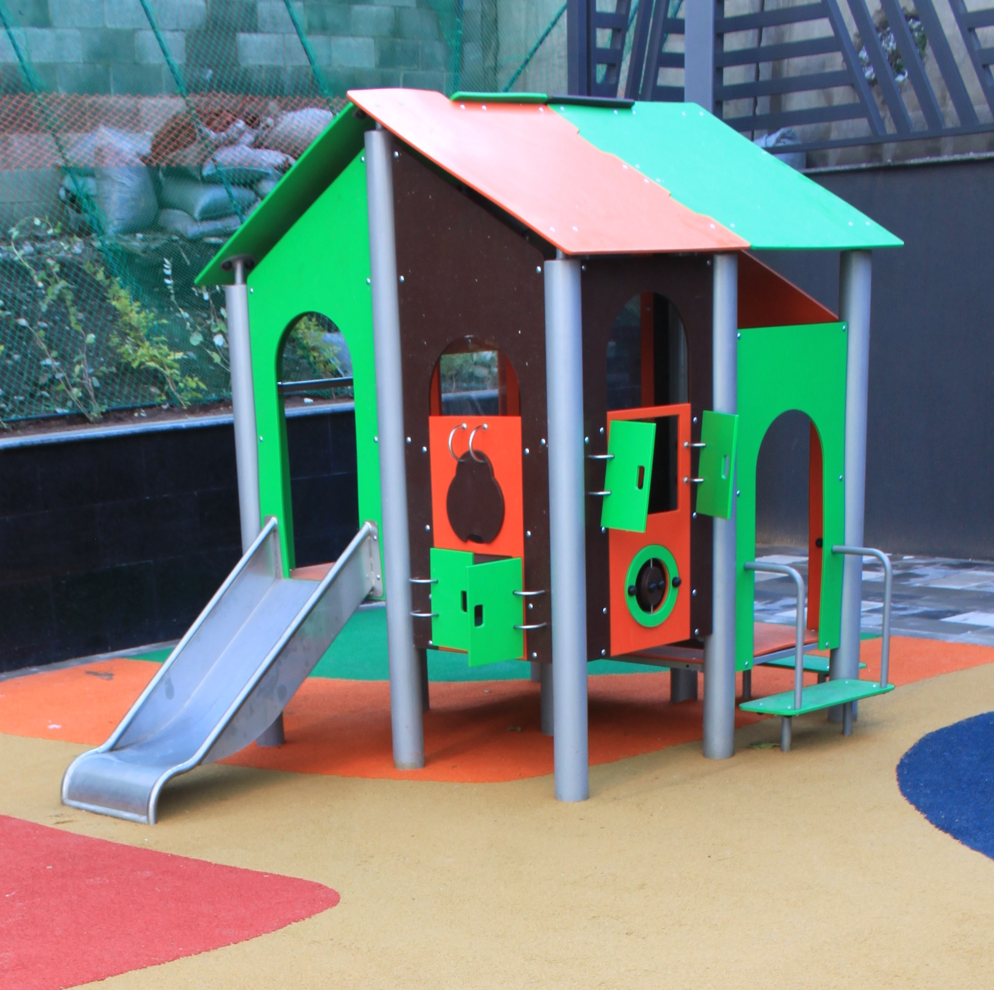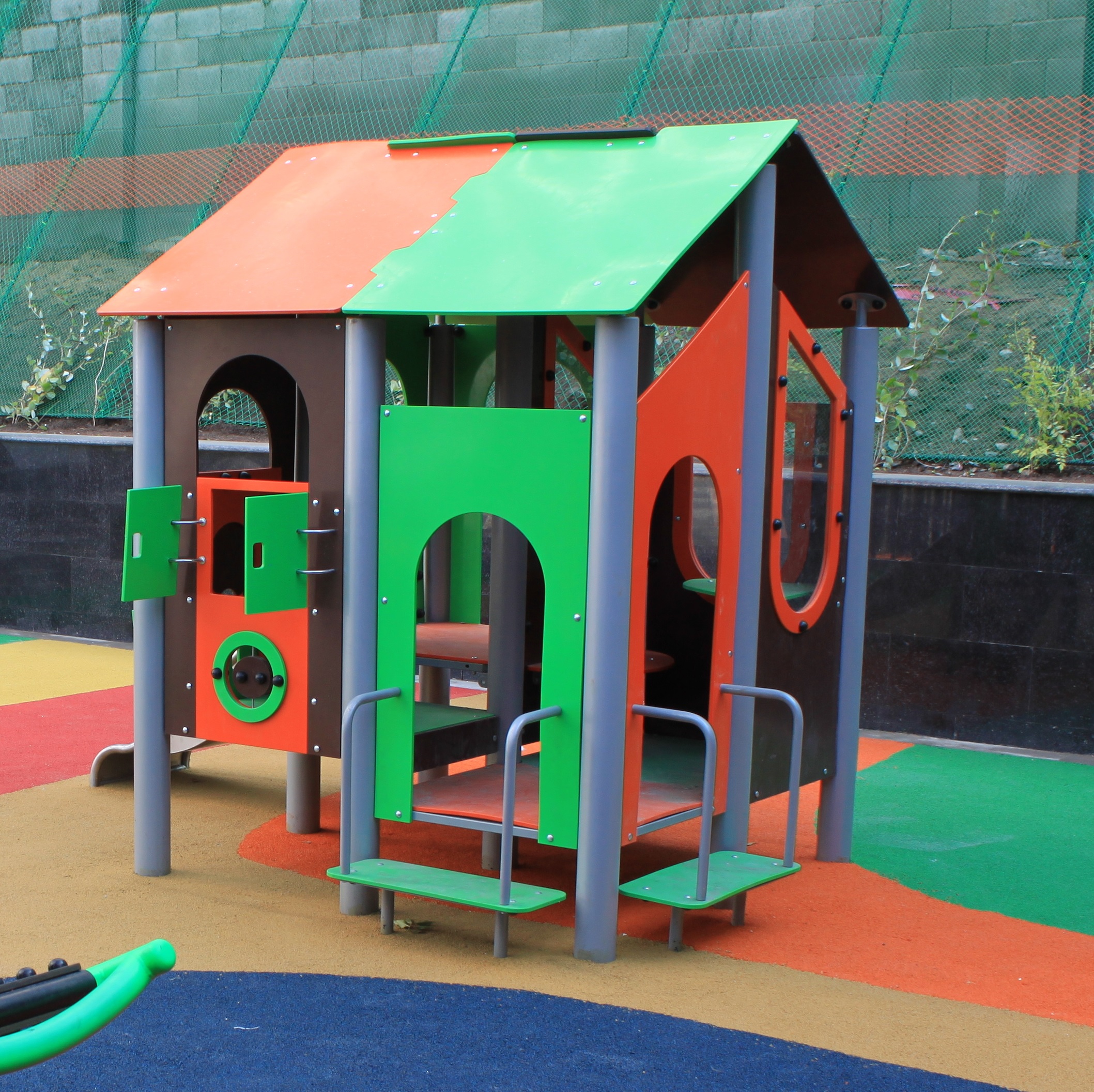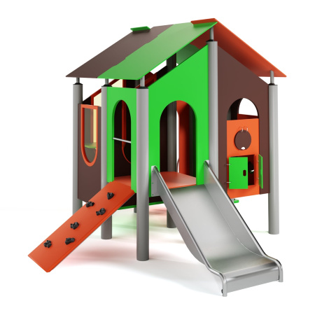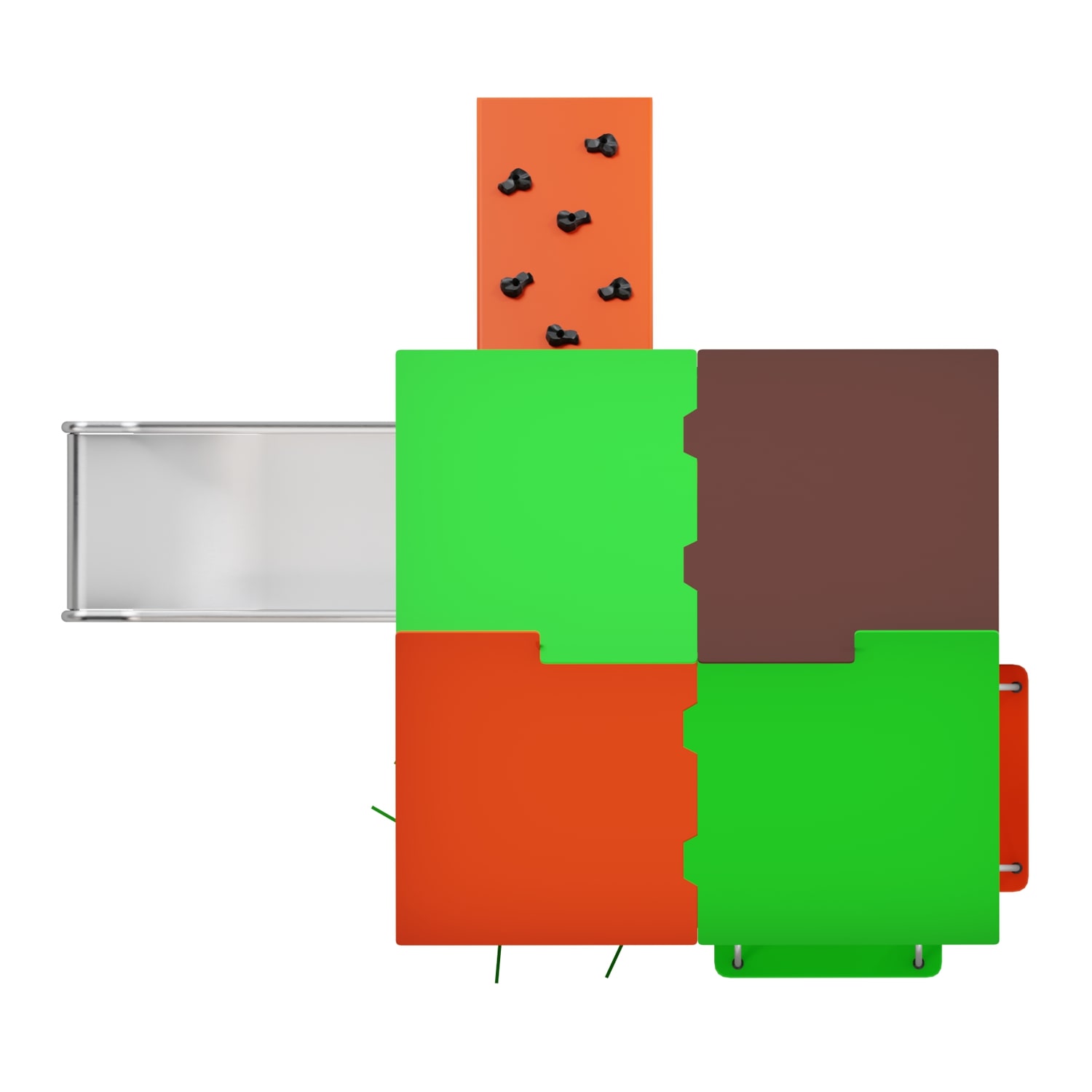 Каркас - сталь конструкционная, покрытие - цинкосодержащий грунт, окраска полимерным порошком. Панели - полипропилен /HPL зеленого, коричневого и оранжевого цвета. Горка - сталь нержавеющая толщиной не менее 2 мм, электрохимическая пассивация сварных швов.