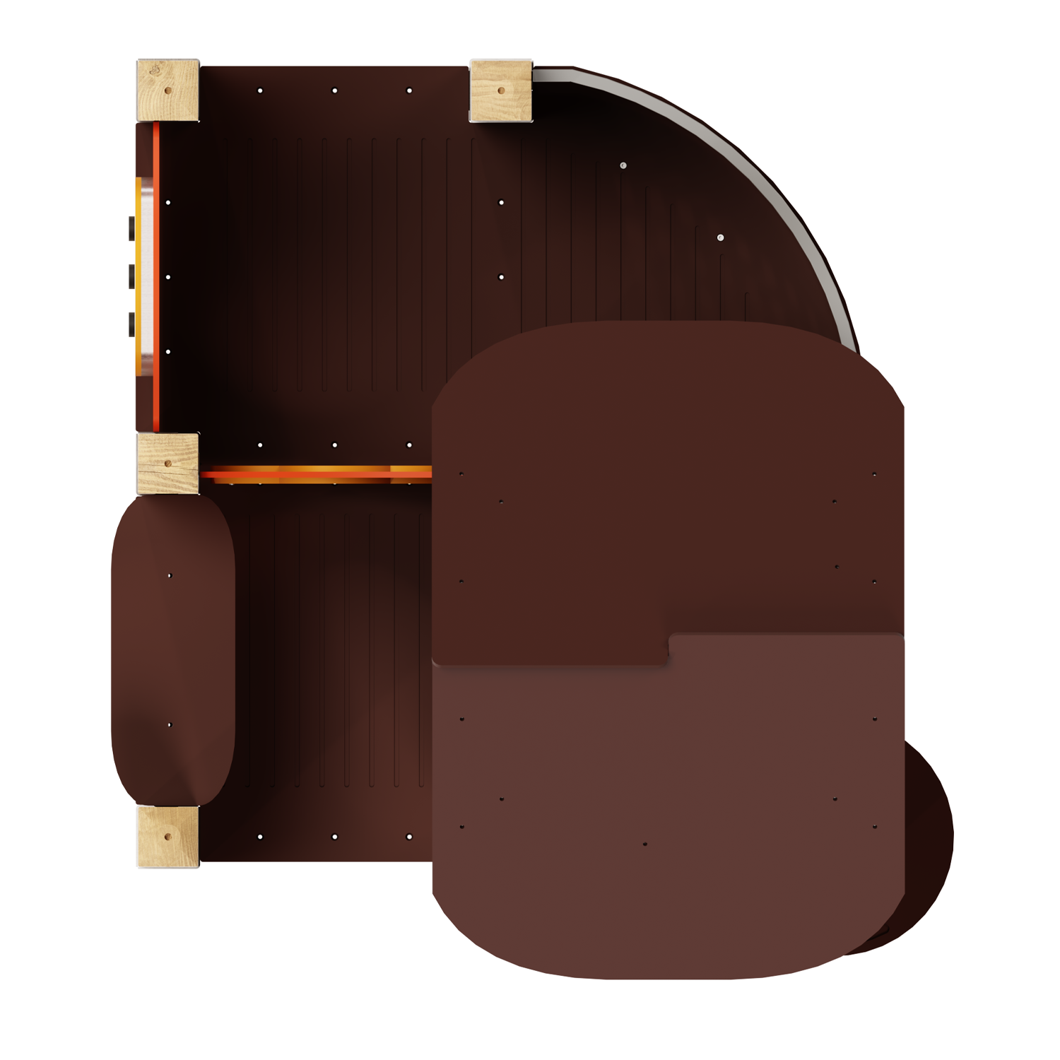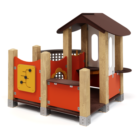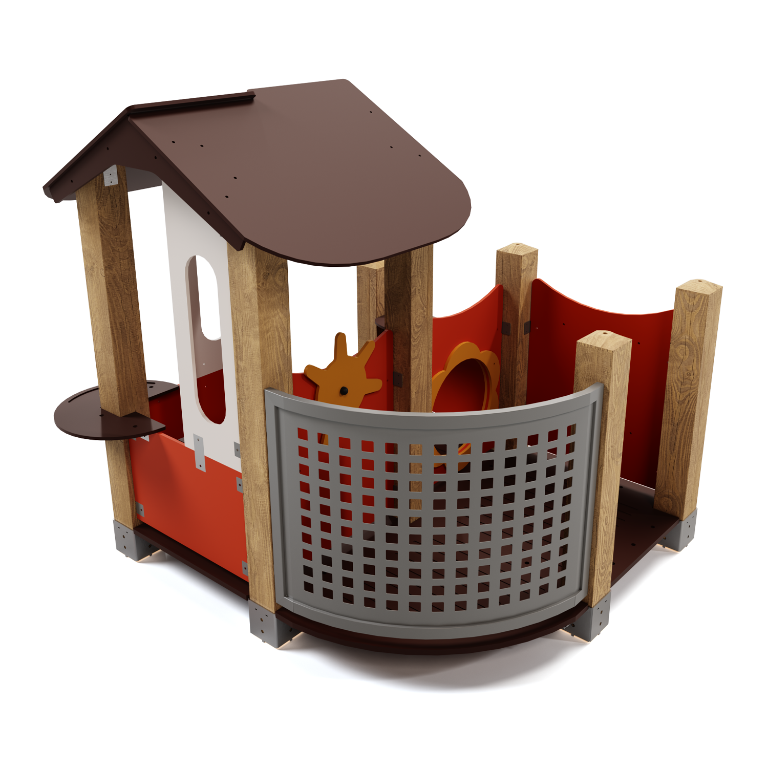 Изделие представляет собой каркасную конструкцию из металлических элементов. элементов из листового пластика и стоек из деревянного бруса. Металл - сталь конструкционная, покрытие – цинкосодержащий грунт, окраска полимерным порошком (RAL по согласованию). Панели ПНД.