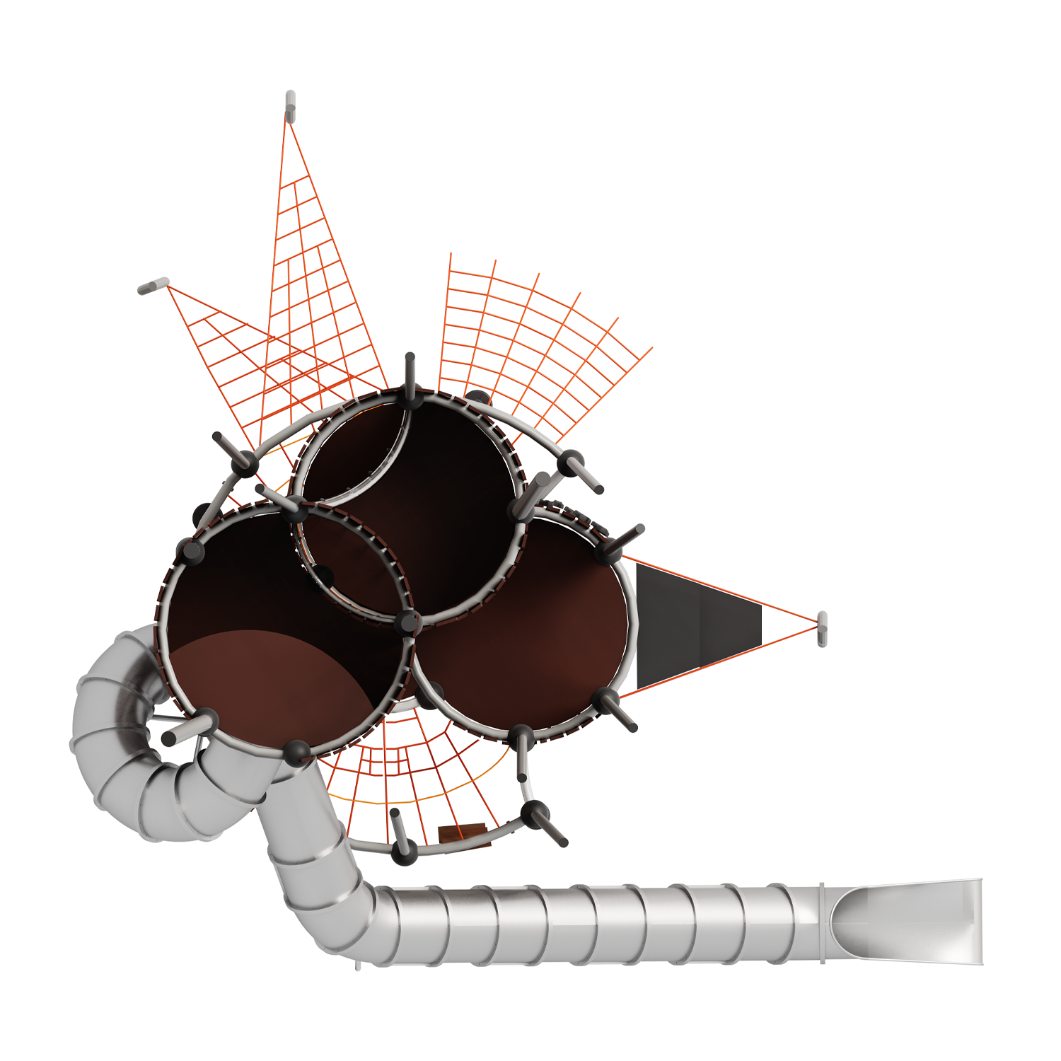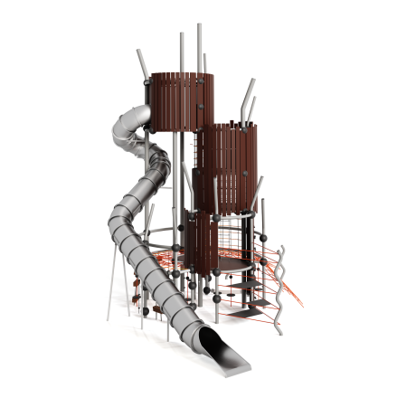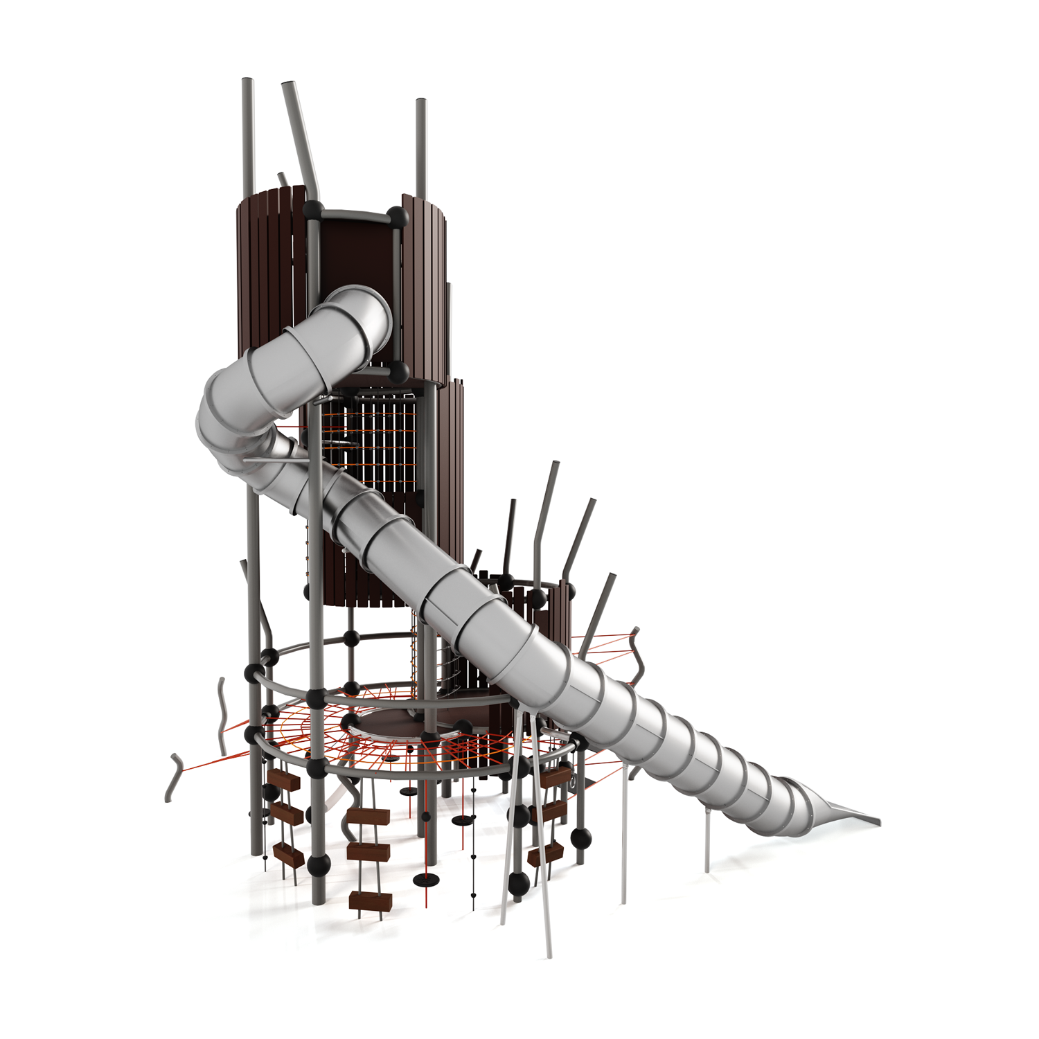 Каркас - сталь конструкционная, покрытие - цинкосодержащий грунт, окраска полимерным порошком. Горки, скаты - сталь нержавеющая толщиной не менее 2 мм, электрохимическая пассивация сварных швов. Панели, ограждения - полипропилен/HPL. Канатные сети, лазы, ограждения - канат армированный 16 мм.