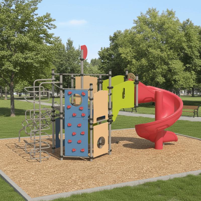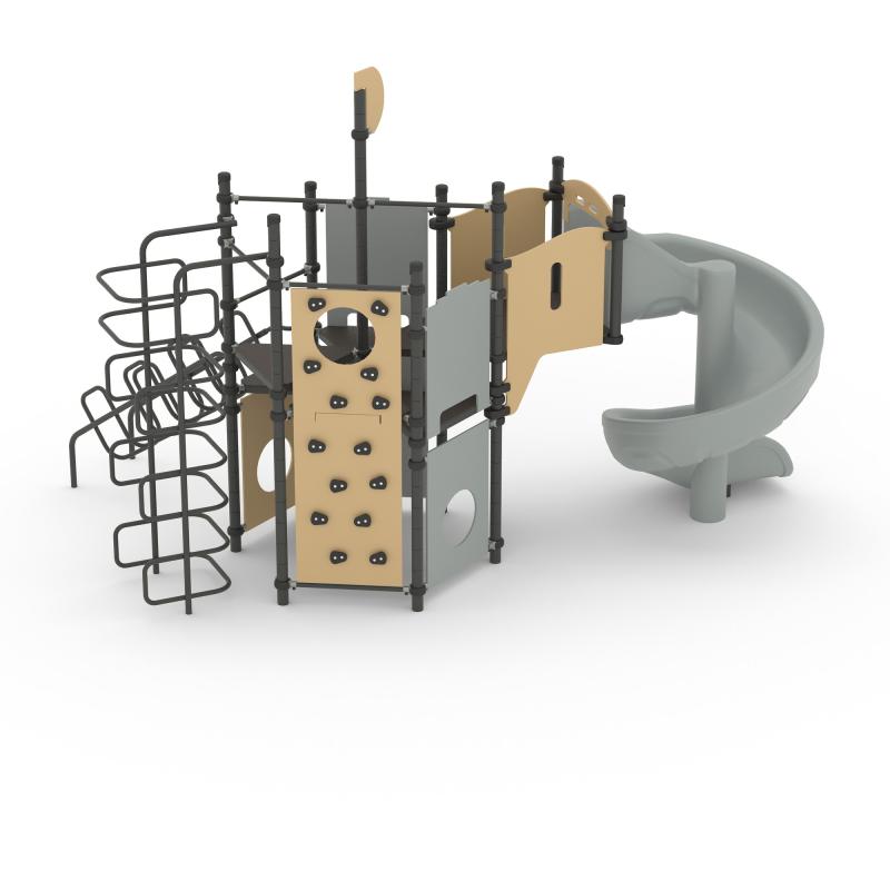 Игровой комплекс для тематических игр и физического развития предназначен для детей в возрасте от 4 лет. Изделие представляет собой сборно-разборную каркасную конструкцию из металлических труб, установленную на забетонированные стойки.Изделие устанавливается на открытых уличных участках, находящихся под контролем ответственного лица – эксплуатанта. Установка Изделия должна проводится на ровной площадке, свободной от насаждений. В зоне приземления должно быть ударопоглощающее покрытие (песок, древесные опилки) минимальной толщиной 300 мм