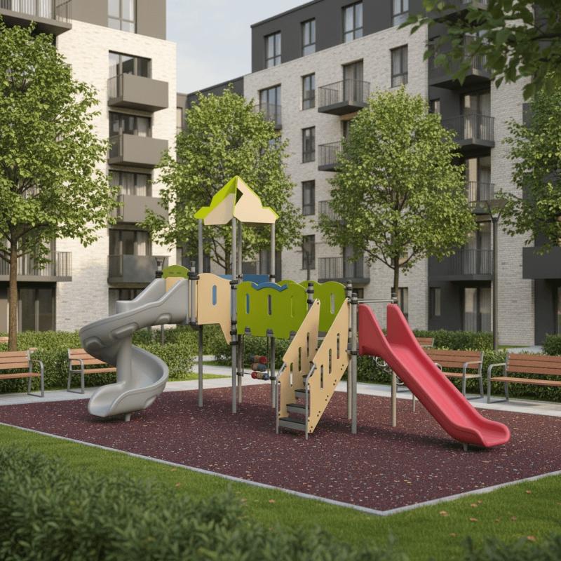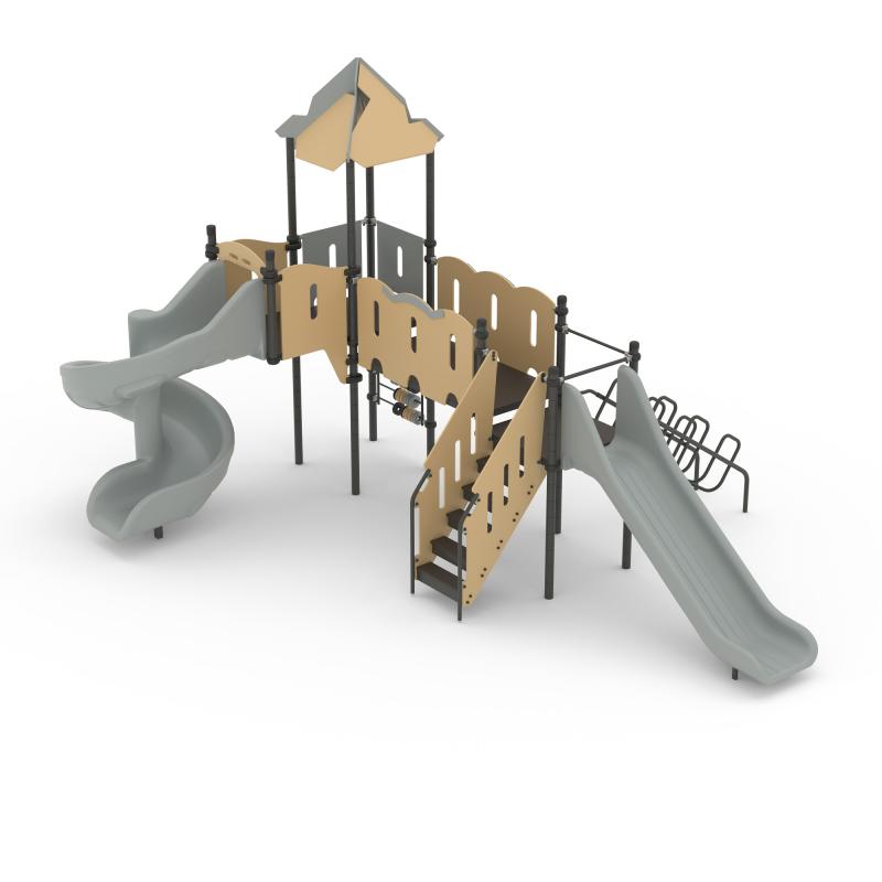 Игровой комплекс для тематических игр и физического развития предназначен для детей в возрасте от 4 лет. Изделие представляет собой сборно-разборную каркасную конструкцию из металлических труб, установленную на забетонированные стойки.Изделие устанавливается на открытых уличных участках, находящихся под контролем ответственного лица – эксплуатанта. Установка Изделия должна проводится на ровной площадке, свободной от насаждений. В зоне приземления должно быть ударопоглощающее покрытие (песок, древесные опилки) минимальной толщиной 300 мм