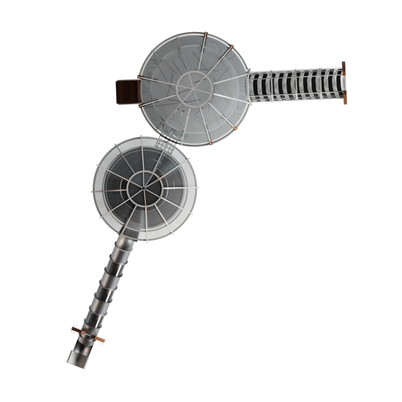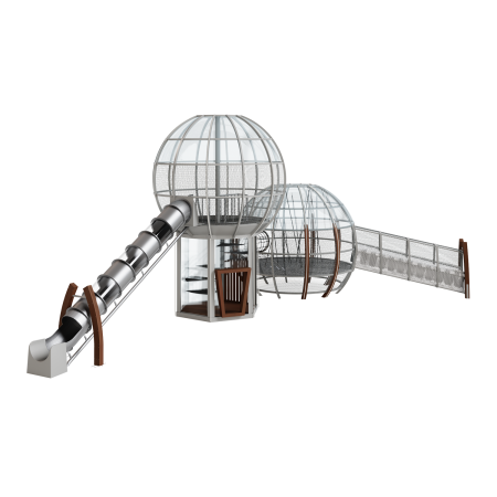 Каркас - сталь конструкционная, покрытие - цинкосодержащий грунт, окраска полимерным порошком (RAL по согласованию). Обшивка – лиственница, покрытие - масло террасное атмосферостойкое. Горки - сталь нержавеющая толщиной не менее 2 мм, электрохимическая пассивация сварных швов. Канатные сети - канат армированный 16 мм. Монолитный поликарбонат.