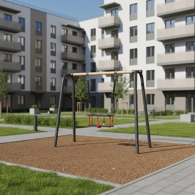 Качели предназначены для размещения на территории парков, дворовых территориях и мест общественного отдыха с целью организации досуга и гармоничного развития детей в возрасте от года.Сиденье представляет собой обрезиненный металлокаркас с амортизирующими бортиками сиденья, четырьмя боковыми перекладинами, ободом.Монтаж качели производится путем бетонирования грунтозацепов в грунт на глубину не менее 500 мм. Установка должна проводится на ровной площадке, свободной от насаждений. В зоне безопасности должно быть ударопоглощающее покрытие (песок, древесные опилки) минимальной толщиной 300 мм.