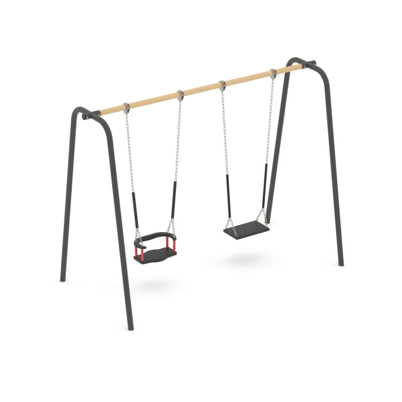 Качели предназначены для размещения на территории парков, дворовых территориях и мест общественного отдыха с целью организации досуга и гармоничного развития детей в возрасте от 4 до 8 лет.Сиденье представляет собой обрезиненный металлокаркас с амортизирующими бортиками сиденья и рельефным узором. Конструкция имеет выгнутую форму, что способствует удалению влаги с сиденья.Монтаж качели производится путем бетонирования грунтозацепов в грунт на глубину не менее 500 мм. Установка должна проводится на ровной площадке, свободной от насаждений. В зоне безопасности должно быть ударопоглощающее покрытие (песок, древесные опилки) минимальной толщиной 300 мм.