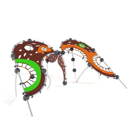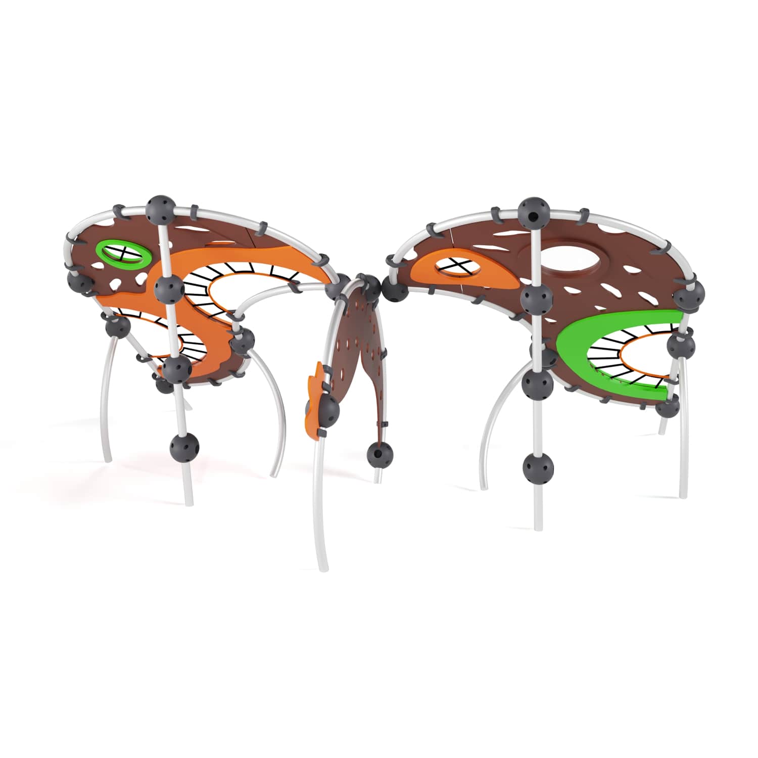 Каркас - сталь конструкционная, покрытие - цинкосодержащий грунт, окраска полимерным порошком. Панели - полипропилен/ПНД. Канатные сети, лазы - канат армированный 16 мм.